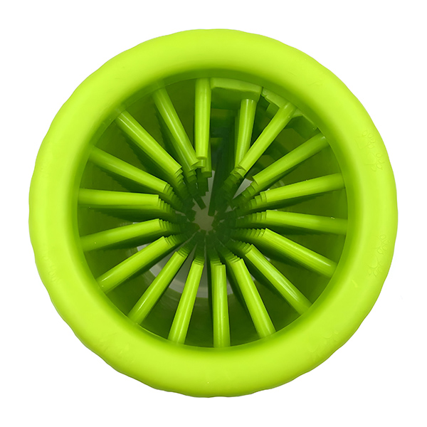 El diseño cilíndrico permite lavar eficazmente las zonas de difícil acceso. Simplemente introduce la pata de tu perro, gírala y deja que las cerdas de silicona eliminen la suciedad y los residuos. Disfruta de un hogar impecable fácilmente.