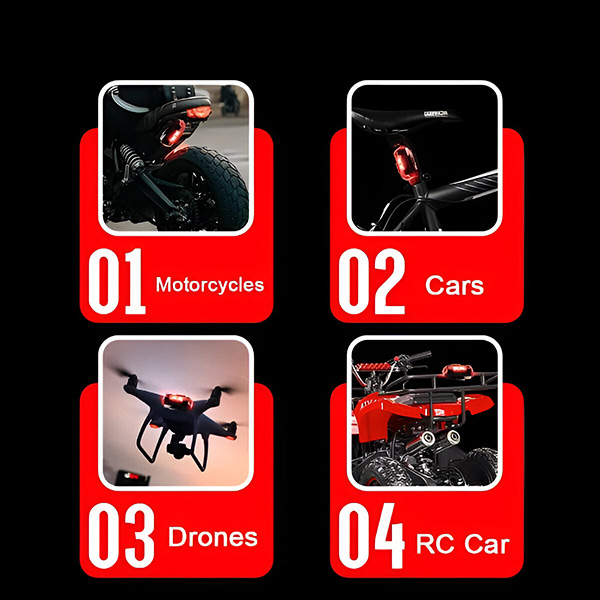 Need tuled on uskumatult mitmekülgsed ja mõeldud autodele, mootorratastele, jalgratastele ja droonidele. Valige turvalise ja lihtsa paigalduse jaoks kas velcro- või kummirõngaste paigaldusmeetodite vahel. Ei ole vaja keerulisi tööriistu ega professionaalset abi.