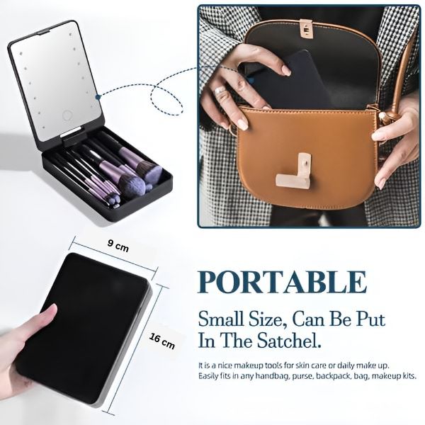 Pintslikomplekt ja LED-peegel mahuvad ideaalselt teie kotti, nii et saate oma meiki hÔlpsasti parandada, kuhu iganes teie pÀev teid ka ei viiks.