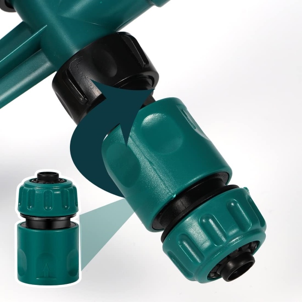 ROTOSPRITZi kahekordsete veevoolikupihustitega saate hõlpsasti ühendada mitu vihmutit, et katta suuremaid alasid. Ühendage lihtsalt kaks või enam ROTOSPRITZi seadet kokku, et kastmine oleks kahepoolne, tagades, et kogu teie aed saab täiusliku veekoguse. Selline sujuv ühendatavus muudab selle ideaalseks ulatusliku muru ja laialivalguvate aiapeenarde jaoks.