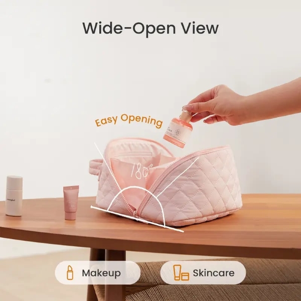 Loodud naistele, kes hindavad ilu ja mugavust – see kohev kosmeetikakott mahutab hõlpsalt kõik sinu igapäevased meigi- ja nahahooldustooted, säilitades samal ajal oma kuju ja struktuuri.